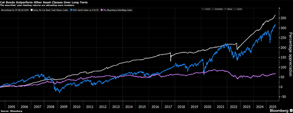 - A way to hedge against inflation and systemic financial risks. Unlike traditional bonds, the performance of Cat bonds is not directly eroded by inflation.